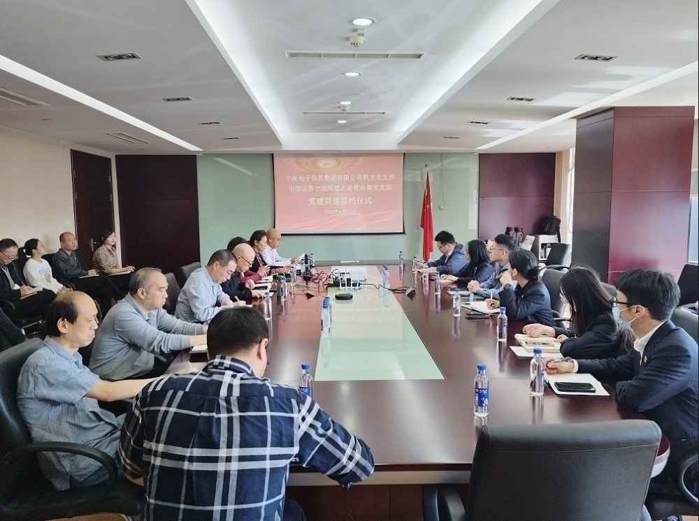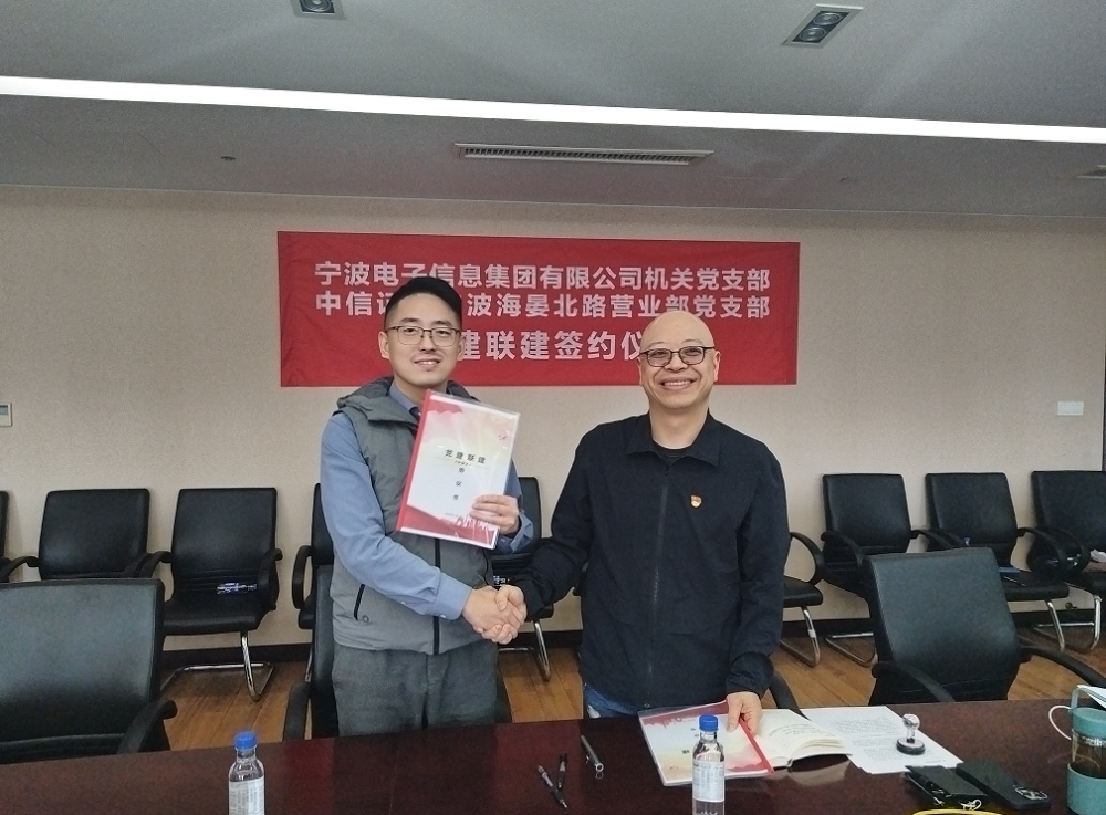 為深入學習貫徹黨的二十大精神,全面落實新時代黨的建設(shè)總要求,推動黨建與業(yè)務(wù)深度融合,4月15日下午,中共寧波電子信息集團有限公司委員會機關(guān)黨支部與中共中信證券股份有限公司浙江分公司委員會寧波海晏北路營業(yè)部黨支部在寧波舉行黨建聯(lián)建簽約儀式。雙方圍繞“資源共享、優(yōu)勢互補、協(xié)同發(fā)展”主題,通過簽約共建、專題講座、交流研討等形式,共謀黨建工作新路徑,共筑事業(yè)發(fā)展新格局。